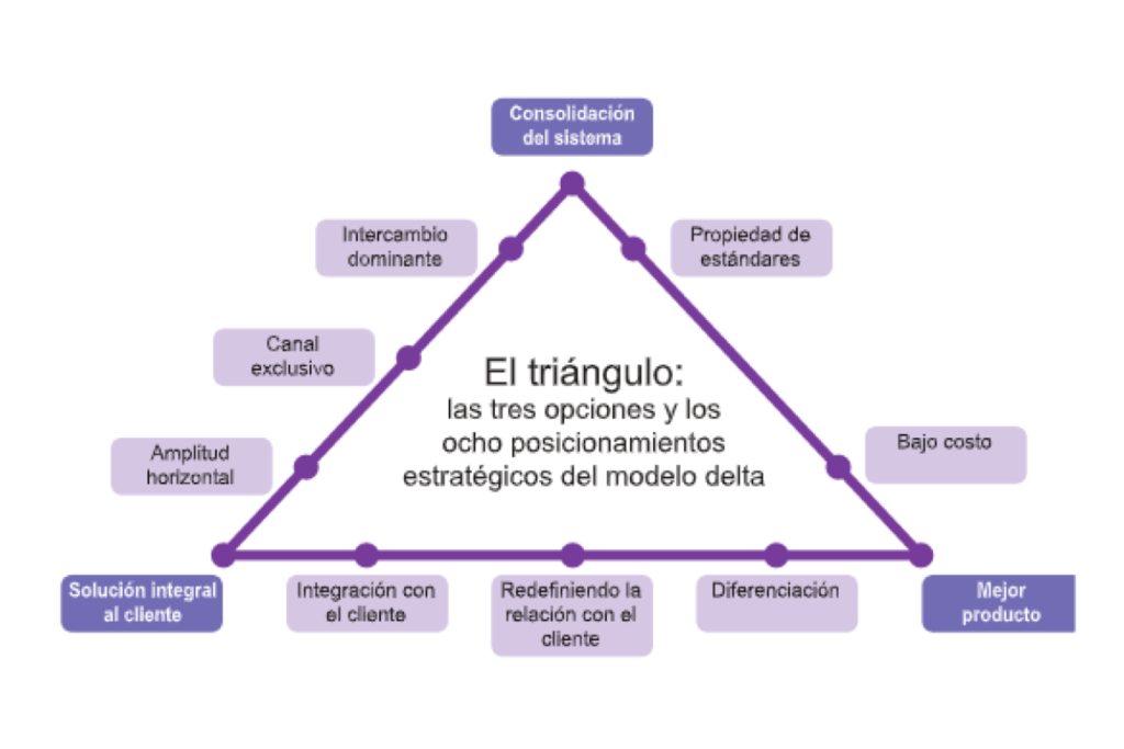 Las tres opciones de posicionamiento estratégico en el Modelo Delta son “Mejor Producto”, “Solución Integral al Cliente” y “Consolidación del Sistema”. Desde un punto de vista económico, las tres opciones de posicionamiento estratégico se refieren, respectivamente, al desafío de lograr economías de escala, economías de ámbito y economías de red. El significado práctico de “economías de red” es lo que Patricio del Sol explora en profundidad en su libro sobre estrategia.